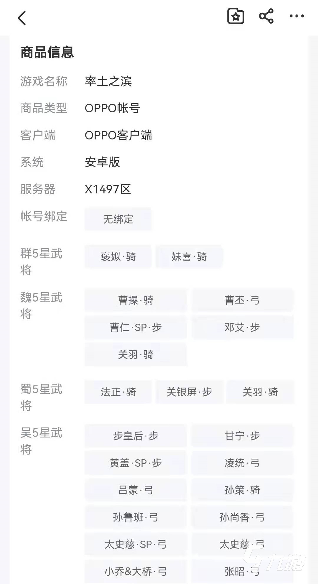 例如率土之濱賬號(hào),其中就詳細(xì)列出了當(dāng)前賬號(hào)的所有的五星武將,還有王者榮耀賬號(hào)中,所有稀有的皮膚,鳳求凰,幻海之心等,稀有的英雄例如武則天,嬴政等,都能詳細(xì)的寫(xiě)出來(lái)。這樣大家不需要上號(hào)就可以預(yù)估出賬號(hào)的價(jià)值。