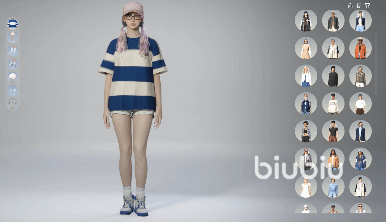 在游戲中服裝方面的設(shè)計體現(xiàn)了全面的個性化定制功能,例如在配置方面可以讓玩家自由去選擇和搭配,有很多元素都能夠精心挑選。例如眼鏡,胸飾,耳環(huán),帽子等,當(dāng)然不僅限于這些,這里面的種類非常豐富。在服裝本體方面,連衣裙,外套,T恤衫,長裙,短褲等,甚至是鞋襪和內(nèi)衣,也都支持進行個性化定制,完全可以根據(jù)個人的喜好進行自定義搭配。在服裝更換方面,為了能更豐富一些,游戲還加入了一個獨特的人工智能工具,可以讓玩家將自己喜歡的圖片或者是圖案上傳過來,這樣能利用人工智能自動生成一鍵帶有該圖案的定制服裝。這樣真正實現(xiàn)了完全自由化的搭配,不至于受各種模型的限制。