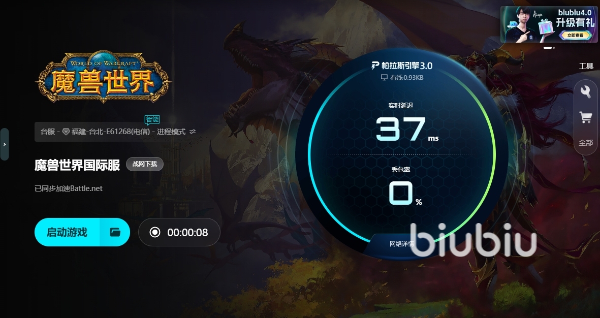 對于玩魔獸世界的玩家來說,網(wǎng)絡是永遠擺在第一位的,畢竟作為20年老游戲,在優(yōu)化方面做的是相當可以的了!所以,當大家在使用了biubiu加速器,相信也就不用為“wow世界延遲高怎么解決”這個問題煩惱。最后,小編想要告訴大家,biubiu除了可以解決延遲問題,大家在玩游戲過程中所遇到的卡頓、閃退等常見問題,其實都可以輕松解決,而且因為擁有智能匹配和智能監(jiān)測功能,甚至可以做到預防問題的發(fā)生。