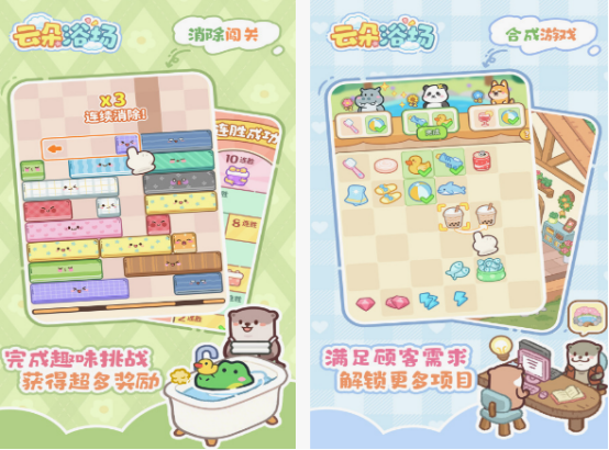 將在這里面成為經(jīng)營浴場的小動物水獺紅豆,整體充滿著可愛以及治愈的風格,想要提升日常所帶來的收入,玩家可不斷的升級設施,讓每個前來為你光顧的小動物們,都能在這里面放松身心,緩解各種疲憊。游戲當中主要的角色就是,各種各種可愛的小動物,無論是進入泳池里面和其他的小動物共同的,在水里面盡情的洗浴,或者是在各種趣味的項目當中,都是玩法比較豐富的,其中就有合成以及消除闖關這種類型。
