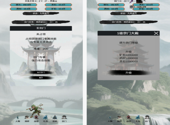 游戲當中涵蓋的宗門一共有8個,既可通過穿越的方式進入修仙的世界,也要不斷的招募弟子,然后收集各方面的資源以后,使自己的宗門得到重大,在與其他的宗門較量的時候,也能利用搶奪資源的方式,來增加自己的實力。相對于大型的修仙類型手游,由于這款玩的過程當中,不需要聯(lián)網(wǎng)單機就能體驗,所以在玩法上也比較簡單。
