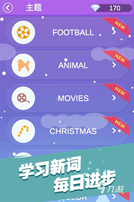 《全民填單詞》這款單詞游戲的畫面制作的非常簡(jiǎn)潔,游戲中每天都會(huì)給玩家更新新的單詞,而且每一個(gè)單詞都有其對(duì)應(yīng)的關(guān)卡挑戰(zhàn),而且每個(gè)單詞都有其對(duì)應(yīng)的圖畫來幫助玩家理解含義,最經(jīng)典的就是單詞連線,除此之外,游戲中還有尋找單詞的玩法可以體驗(yàn),而且每種玩法都有三種困難模式可以選定,每天簽到都能獲得大量的鉆石。
