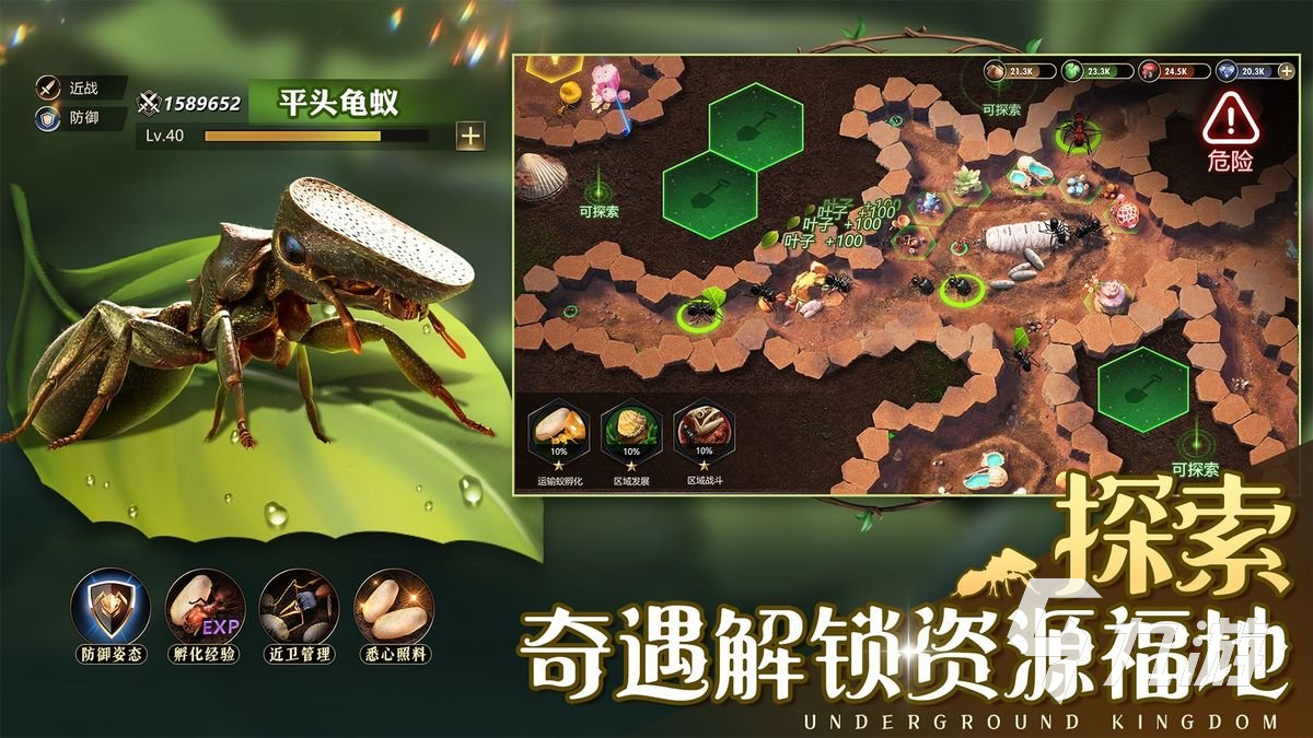 這款游戲中玩家可以探索神奇的動(dòng)物世界,在這里感受大自然的魅力,同時(shí)可以和螞蟻軍團(tuán)一起建立新的王國,上百種的螞蟻都能輕松的培養(yǎng),在這里組建一支螞蟻軍隊(duì),面對(duì)其他動(dòng)物的攻擊,可以搭配不同的陣容進(jìn)行激戰(zhàn),而且還可以在這里自由的武裝自己,襲擊其他入侵者,收集各種材料打造一個(gè)華麗的螞蟻王國。