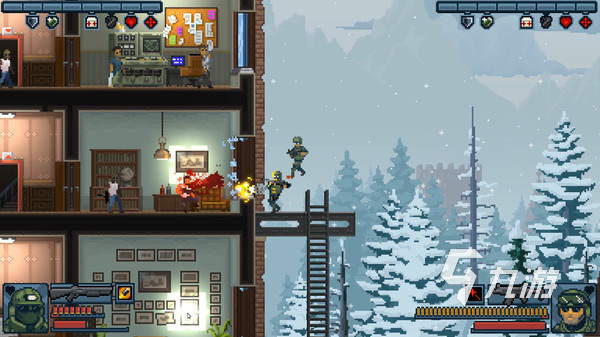 破門而入行動小隊是一款橫屏動作及射擊相結合的游戲,不管是游戲的玩法,還是帶來的體驗表現上都很像80后經典街機合金彈頭,進入該游戲后,玩家將化身為一個SWAT特征并,通過合作闖關車獲取成長所需要的獎勵,游戲設置了非常豐富的關卡內容,每一關都有著不一樣的玩法,非常驚險刺激。