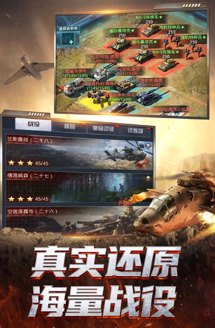 這是一款以真實二戰(zhàn)歷史為藍本的策略戰(zhàn)爭手游,視覺效果宏大壯觀,生動再現(xiàn)了二戰(zhàn)時期的裝甲力量。玩家將扮演一名指揮官,負責指揮海陸空三軍,制定有效的戰(zhàn)略計劃,運用多樣的戰(zhàn)術應對復雜多變的戰(zhàn)場環(huán)境,巧妙排兵布陣,戰(zhàn)勝敵人。游戲還綜合考慮了地形和道路以及補給等戰(zhàn)爭要素,玩家需要根據(jù)不同的地形制定相應的策略,生產(chǎn)并訓練40多種二戰(zhàn)時期的兵種,根據(jù)戰(zhàn)況合理搭配,趣味十足。