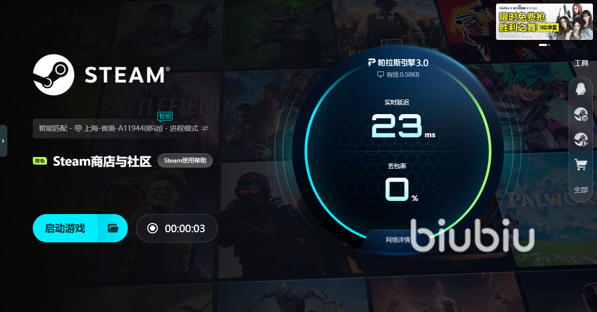 這一代帕拉斯引擎的另一個(gè)顯著提升,是在智能加速節(jié)點(diǎn)分配上的表現(xiàn)。對(duì)于像《SHOJING》這樣依托Steam平臺(tái)運(yùn)行的游戲,biubiu會(huì)根據(jù)用戶所在地區(qū)與目標(biāo)服務(wù)器位置,自動(dòng)匹配最佳傳輸路徑,避免走不必要的跳轉(zhuǎn)線路,進(jìn)一步壓縮傳輸時(shí)延。同時(shí),配合biubiu內(nèi)置的網(wǎng)絡(luò)狀態(tài)實(shí)時(shí)監(jiān)控功能,玩家可以在游戲過程中查看當(dāng)前延遲、丟包率、連接穩(wěn)定度等關(guān)鍵數(shù)據(jù),一旦發(fā)現(xiàn)異常也能及時(shí)調(diào)整。