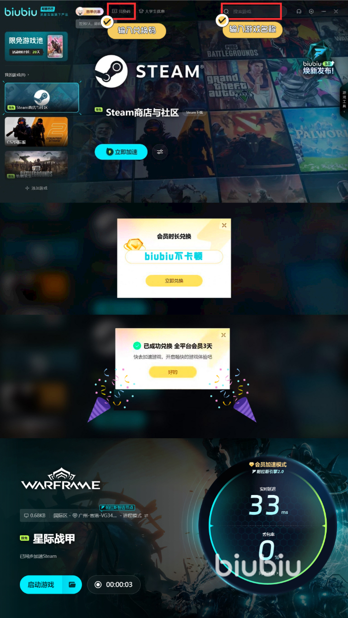 不過,《星際戰(zhàn)甲》作為一款在線實(shí)時(shí)游戲,頻繁的數(shù)據(jù)交互與任務(wù)同步對(duì)網(wǎng)絡(luò)連接的要求極高。在解鎖赫明斯巢體這一復(fù)雜系統(tǒng)時(shí),很多玩家會(huì)遇到加載失敗、任務(wù)掉線、商店不顯示藍(lán)圖等問題,尤其是在聲望兌換和飛船內(nèi)部系統(tǒng)交互中更為常見。為此,建議使用biubiu加速器來(lái)優(yōu)化游戲連接。biubiu通過智能節(jié)點(diǎn)加速功能,顯著提升與服務(wù)器之間的數(shù)據(jù)傳輸效率,減少延遲與掉線現(xiàn)象。新用戶注冊(cè)biubiu后將獲得24小時(shí)的免費(fèi)加速時(shí)長(zhǎng),無(wú)需額外設(shè)置即可直接使用。同時(shí),輸入專屬口令【biubiu不卡頓】還能額外兌換72小時(shí)加速時(shí)長(zhǎng),為你提供充足的穩(wěn)定網(wǎng)絡(luò)保障。無(wú)論是任務(wù)執(zhí)行還是船艦操作過程,都能獲得更加流暢的體驗(yàn),避免因網(wǎng)絡(luò)問題影響游戲節(jié)奏。