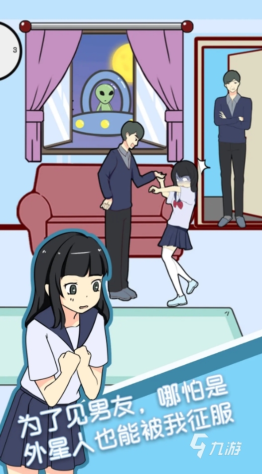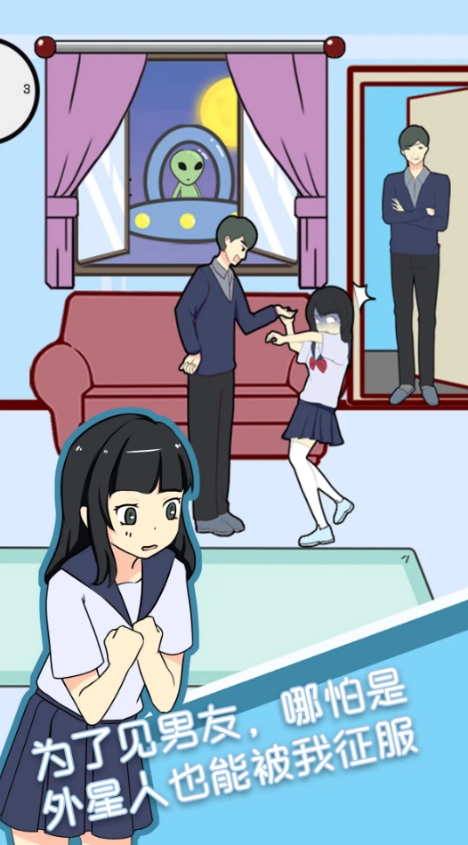 被老爸發(fā)現(xiàn)自己有男友后,主角與男友的約會之旅將因老爸的橫插一腳而變得充滿阻礙,各位也將在游戲內(nèi)與想破壞約會的老爸斗智斗勇,也令游戲既顯得鬧騰,又充滿著極其濃厚的歡樂氛圍。游戲以趣味解謎為玩法核心,每當老爸要作妖破壞主角與男友的約會時,各位可利用一切已有的道具或環(huán)境因素,來破壞掉老爸的計劃,使約會能更為順利地進行,而且它的每道關卡都是獨立故事,不會重樣。