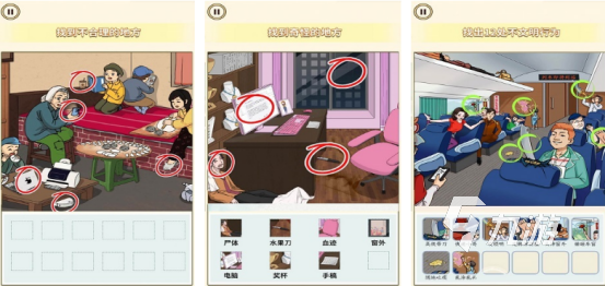 以找不同的玩法為核心,在游戲開局之后,首先屏幕上就會呈現(xiàn)出兩張圖片,而在每一張圖片當(dāng)中都會有5個不同的地方,每個關(guān)卡也有時間的限制,必須要在規(guī)定的時間之內(nèi)將不同的地方全部找到,就能夠獲得相應(yīng)的分數(shù),還可以解鎖更高難度的關(guān)卡內(nèi)容。您在挑戰(zhàn)關(guān)卡的時候,需要根據(jù)其中的主要場景以及不同的規(guī)則完成挑戰(zhàn)。