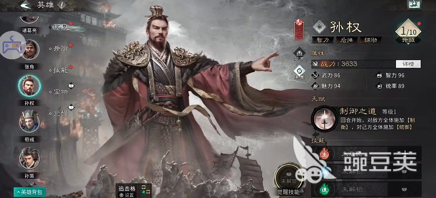 當(dāng)然這個(gè)品質(zhì)的提升不僅是疊加孫權(quán)自身的有心一些優(yōu)勢(shì),他還會(huì)給敵方帶來(lái)更高的傷害數(shù)值,而且他本身也有一些增益效果是可以體現(xiàn)在己方隊(duì)友身上的,所以整體隊(duì)伍如果想要推進(jìn)的速度更快的話,孫權(quán)是一定要提前進(jìn)行培養(yǎng)的,這里孫權(quán)放在陣容里面就是相當(dāng)于統(tǒng)帥的位置,后期再搭配的話,大家可以給孫權(quán)搭配兩個(gè)副將,也就是呂布以及郭嘉,這兩個(gè)角色之間其實(shí)是一個(gè)比較經(jīng)典的搭配了。