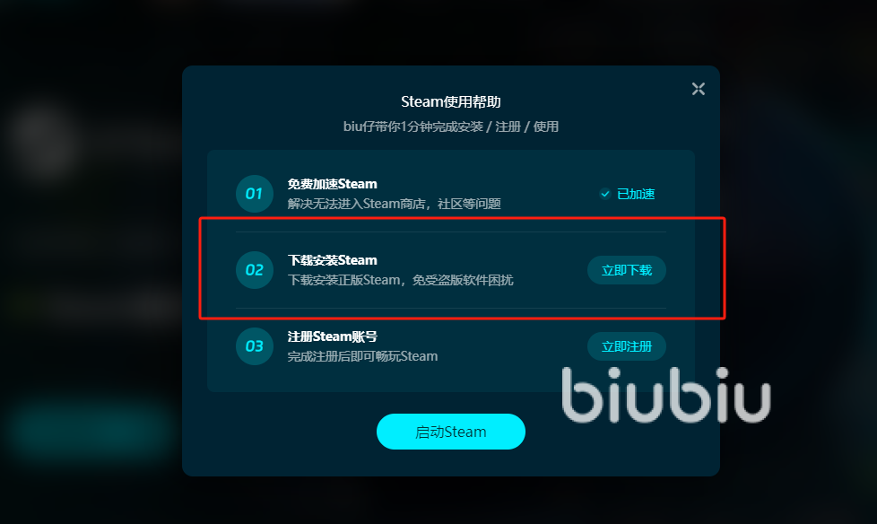 而且biubiu這里還有直達官網(wǎng)的方式哦,只要找到steam的加速頁面,里面就有使用幫助,第二個點擊一下,就直接跳轉(zhuǎn)到官網(wǎng)了,大家可以進行后續(xù)的步驟的。