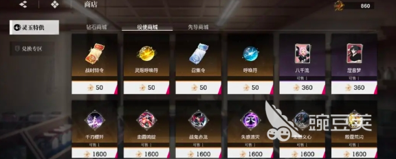 入口是很好尋找的,就在商城界面。點擊主界面的商城圖標之后,就會和鉆石商城等一系列模塊一起出現(xiàn)。界面的設(shè)計簡潔直觀,不需要花時間去翻找,就算是新手也可以輕松的定位。商店里面的道具都是平時需要使用的剛需品,例如角色召喚類,還有角色專屬類。召集令還有呼喚符都是擴充陣容的關(guān)鍵可以直接作用于角色的召喚。戰(zhàn)時特令會比較適合抽卡需求較高的玩家,例如100個靈玉就可以兌換10個,從性價比這一方面來看是很實在的。