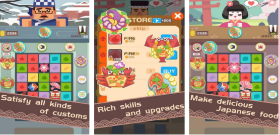 想提升自己的廚藝,想利用最快的時間制作各種美食,此游戲就可讓你親自體驗到烹飪美食的快感。在經(jīng)營料理店鋪時,所具備的食材類型特別豐富,每種食材組合在一起,所制作出的口感都與眾不同。很多顧客對于美食的制作速度要求都比較高,在顧客還沒有心煩意亂之前,可通過消除的方式,將各種食材組合在一起制作出口感獨特的料理,得到顧客好評。