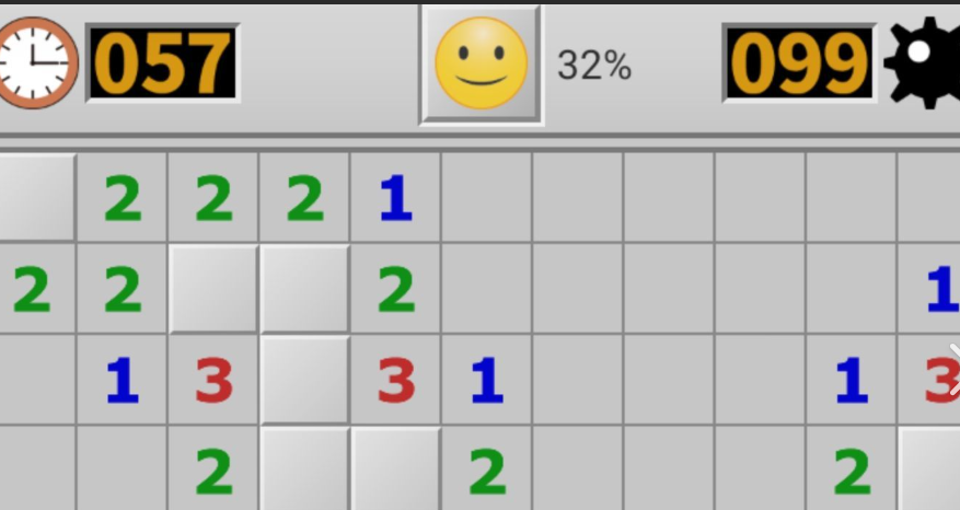 該游戲的界面雖然簡潔,但是很還原掃雷之前的一些核心玩法,你需要精準(zhǔn)點(diǎn)擊沒有雷區(qū)的區(qū)域,并掃清所有的安全方格就可以獲得勝利,整個(gè)過程需要你進(jìn)行數(shù)學(xué)推算以及運(yùn)氣成分,有時(shí)候你可以通過方格的數(shù)字來判斷周邊的雷區(qū)位置,挺考驗(yàn)各位的邏輯思維的。