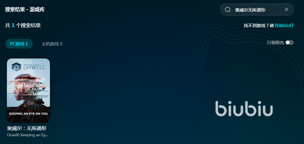 biubiu支持加速非常多游戲,輸入奧威爾無(wú)所遁形就能查找到加速資源。如果暫時(shí)玩膩了奧威爾無(wú)所遁形,也可以在游戲庫(kù)里面看看有沒(méi)有自己感興趣的。biubiu游戲庫(kù)資源特別強(qiáng)大,國(guó)內(nèi)國(guó)際游戲應(yīng)有盡有,還貼心給游戲都做好了分類,解決大家的游戲荒。