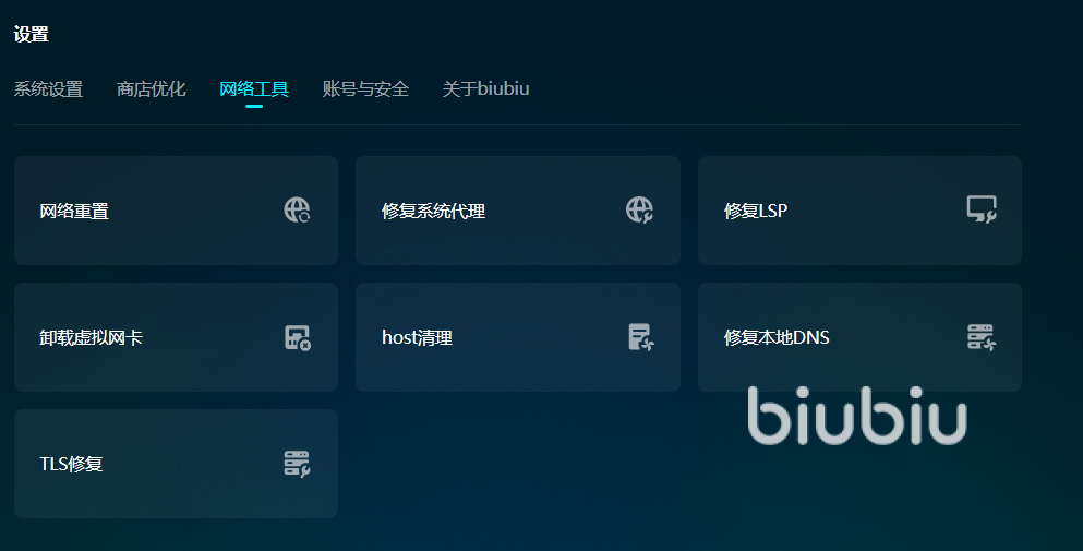 如果電腦出現(xiàn)網(wǎng)頁(yè)無(wú)法加載,或者是游戲內(nèi)一片空白的情況,也可以用biubiu工具修復(fù)它們,系統(tǒng)工具功能強(qiáng)大,既能對(duì)本地hosts文件進(jìn)行清理,又可以修復(fù)電腦網(wǎng)卡故障。而且工具箱是免費(fèi)使用的,有了biubiu玩家就不需要到處找人幫忙修電腦了。