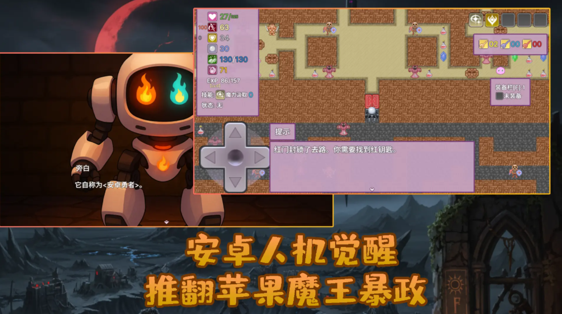 經(jīng)典的魔塔系列的內(nèi)容所帶來的感覺還是非常令我們印象深刻的,在其中我們將會依靠著戰(zhàn)斗的方式來讓你們完成挑戰(zhàn),《安卓勇者與蘋果魔王》這款手游內(nèi)的故事主題的元素還是有著很多的隱喻,整體的美術(shù)資源的表達(dá)也是有著較為復(fù)古的情懷呈現(xiàn)出來,還有專門的機(jī)械迷宮的冒險(xiǎn)氛圍可以見到。