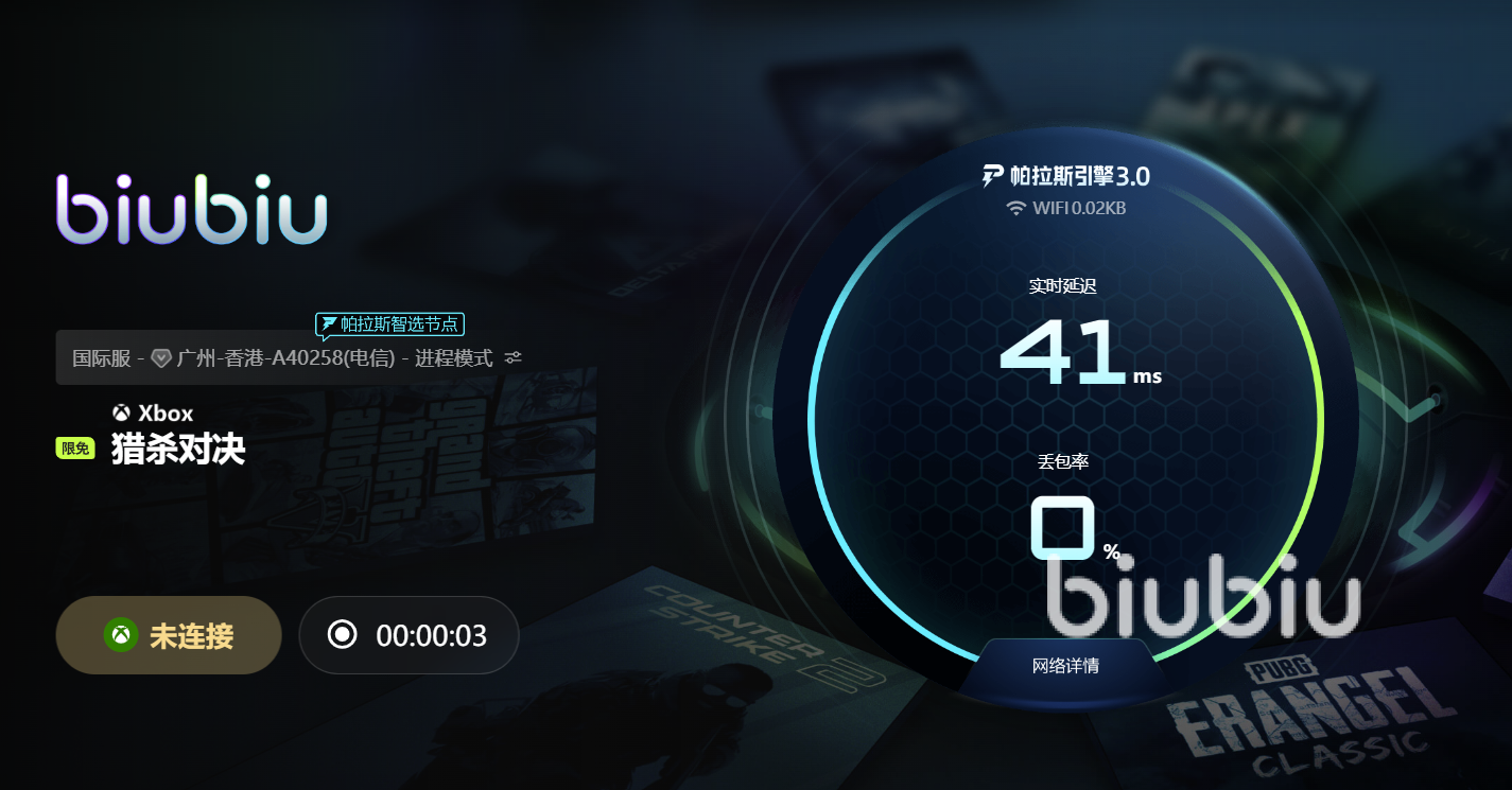 這一次的升級之后,biubiu迎來了帕拉斯引擎3.0。該引擎能智能掃描全球服務(wù)器節(jié)點,自動選擇延遲最低、穩(wěn)定性最高的線路,實現(xiàn)數(shù)據(jù)“直連”目標服務(wù)器。更重要的是,當主線路出現(xiàn)波動時,系統(tǒng)可在毫秒級內(nèi)切換至備用節(jié)點,保證數(shù)據(jù)在連接的時候不中斷、數(shù)據(jù)不丟失。這一機制有效避免了因網(wǎng)絡(luò)抖動導致的“鬼步”“瞬移”“技能未響應(yīng)”等問題,特別適用于獵殺對決中多人同屏、快速移動的高強度戰(zhàn)斗場景。