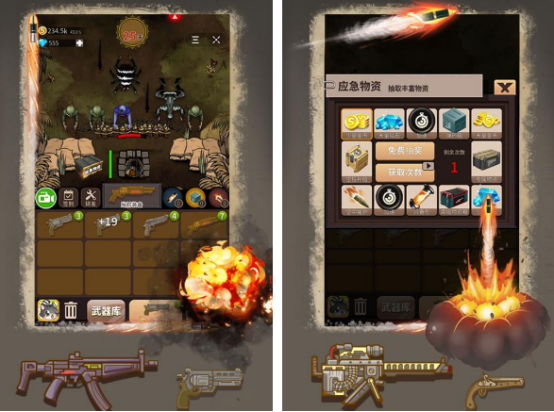 作為單手就能操作的豎屏末日僵尸題材,在進(jìn)入了有僵尸怪物的世界當(dāng)中以后,就可以通過不斷收集各種武器的方式,抵御僵尸怪物的入侵。除此之外,游戲當(dāng)中還有各種豐富的武器,包括常見的手槍沖鋒槍,甚至還有火箭筒等。通過得到的各種新式的武器以后,還能利用組裝拆解等方式獲得更厲害的武器,盡可能地生存下去。