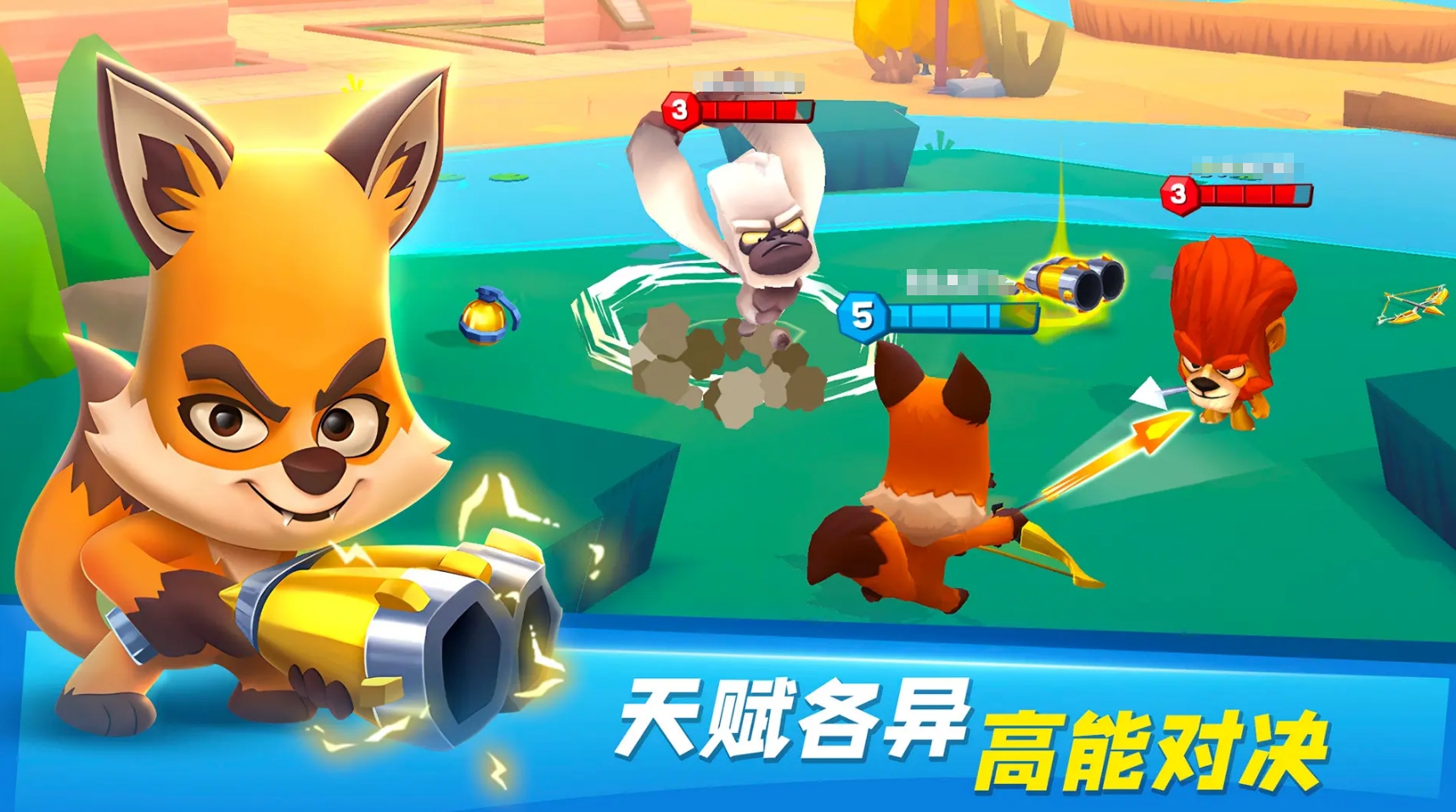 化身為小動物并進行吃雞對決,是動物王者的核心。它在對局模式與大部分吃雞作品類似,都會在地圖上放置多種不同的武器供人們?nèi)ナ叭∨c使用,同時也為各位設計了諸多能進行利用的地形,讓各位可以借著地形帶來的機制更好地去伏擊對手或完成逃生,更有種類繁多的趣味道具,能幫助人們更好地完成對對手的定位或是追蹤對手的蹤跡,是融合了休閑競技和戰(zhàn)術競技等多種元素的精品。