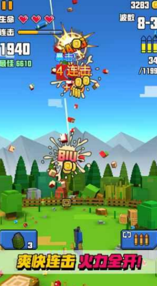 像素射擊大戰(zhàn)在這里開啟玩法相當直觀,畫面清新又可愛,上手難度適中,對于偏休閑風格的玩家來說,特別適合,同時又融入了?Fps模式,采用豎屏操作,只需利用手指點擊屏幕,要控制射擊方向,即可快速點擊并完成戰(zhàn)斗。連續(xù)擊中目標,就能夠瞬間進入狂暴狀態(tài),這樣攻擊的傷害以及所收獲的金幣會直接翻倍。