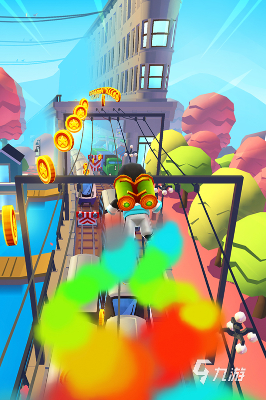 在這款地鐵跑酷游戲中,玩家可以在各種鐵軌或火車(chē)的車(chē)頂上開(kāi)啟跑酷玩法,收集金幣,并且利用各種道具提升速度,還有滑板,飛碟等等,甚至還可以佩戴噴氣式發(fā)動(dòng)機(jī),一路向前。