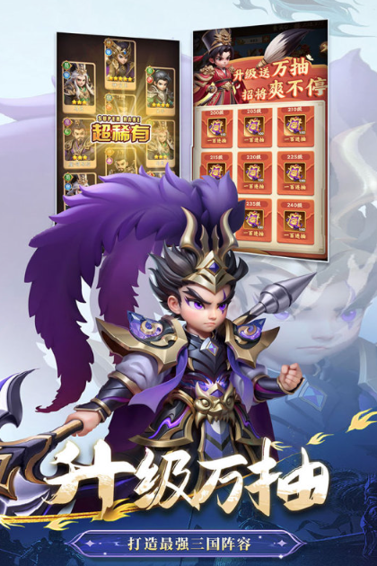 這款游戲讓大家成為三國當(dāng)中的一方豪杰,大家可以招兵買馬以待時機。游戲讓那些歷史上的大臣武將都拜服于你,給了你發(fā)揮計謀的足夠空間。游戲細(xì)致地備了公會戰(zhàn)玩法,大家將會因此與天南地北的玩家有交際,彼此間或是成為隊友,或是成為對手,展開一場權(quán)謀之戰(zhàn)。游戲為了讓大家不用那么辛苦的賺資源,特別準(zhǔn)備了掛機功能。