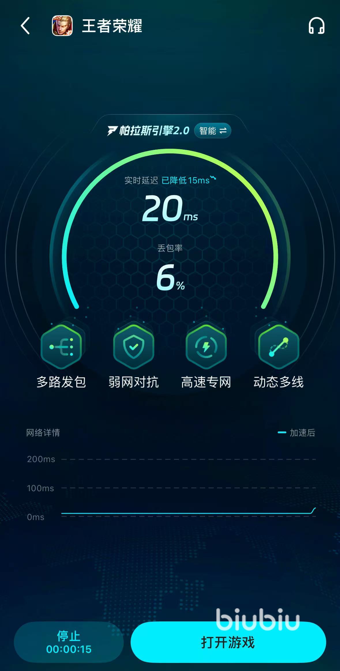 王者這款游戲能一直保持這么高的熱度,和游戲不需要升級也不需要裝備打造的玩法有很大的關(guān)系。玩家只需要選擇自己想要玩的英雄角色即可,再加上好的隊伍成員配合就很有可能成功拿下對方的水晶。不過如果玩家喜歡在對戰(zhàn)過程中喜歡高清畫質(zhì)、且沒有關(guān)閉后臺軟件的話,還是會對游戲的穩(wěn)定造成一定的影響,在手游端給玩家們介紹一個好用的加速器——biubiu。