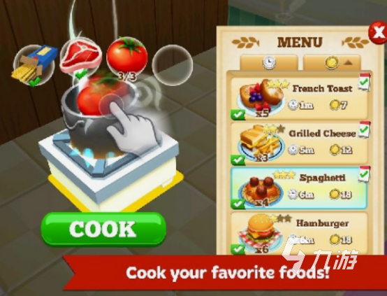 整體充滿著溫馨的場(chǎng)面以及卡通的人物,在不斷的解鎖主題餐廳以后,就可制作出符合餐廳的美食,開啟一段屬于自己的烹飪之旅。涵蓋了各種中式早餐或者是各國(guó)的美食快餐等,利用所掌握的美食菜譜以后,完成各種食物的制作,享受琳瑯滿目的美食。在制作美食的過(guò)程當(dāng)中,玩家將成為一名廚師,不斷的解鎖廚房以及美食菜譜以后,感受每種美食的特色。
