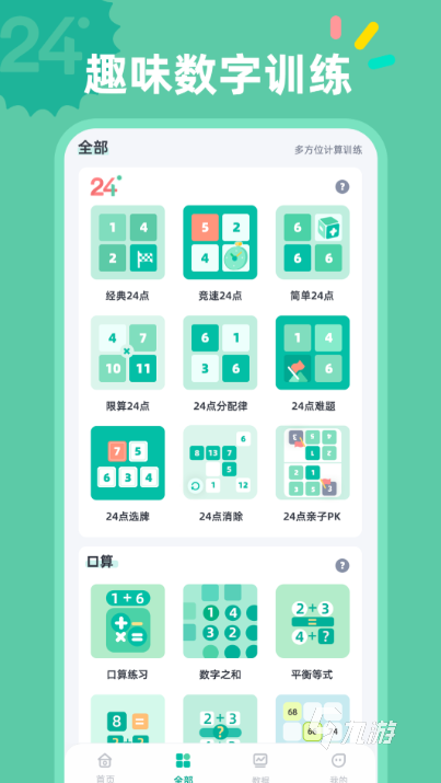 游戲會給出大家4個數(shù)字,大家需要加減乘除,把這些數(shù)字算出結(jié)果為24。這些規(guī)則很簡單,它可以快速的調(diào)動大家的數(shù)學(xué)腦細(xì)胞。這些游戲可以拉著朋友家人一起玩,看看誰升的又快又準(zhǔn),歡樂和競爭感十足,而且每次給的4個數(shù)都不一樣,每輪都會有新的挑戰(zhàn)思維邊界不斷的被擴(kuò)展,玩著玩著大家對數(shù)字會變得更加敏感,運(yùn)算也變得更加順暢了。