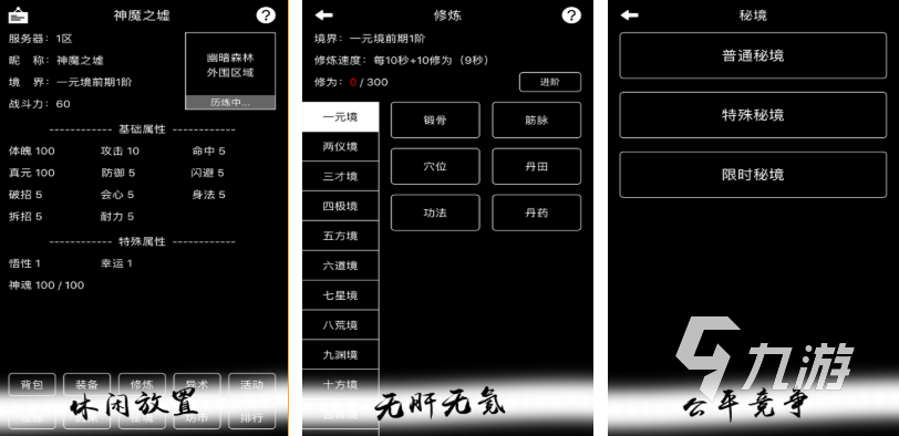 神魔之墟是擁有黑色調(diào)背景的文字互動類游戲,具備休閑放置操作和基礎(chǔ)的神魔大陸世界觀,不聯(lián)網(wǎng)也不氪金的內(nèi)容讓這款魔幻游戲更有魅力,個人boss與各類挑戰(zhàn)關(guān)卡等待著玩家盡情體驗,游戲節(jié)奏較慢能讓大家慢慢享受自己變強的過程,極為豐富的文字性敘述內(nèi)容也增添了游戲魅力,飽滿劇情也為大家介紹了神魔玄幻世界觀。