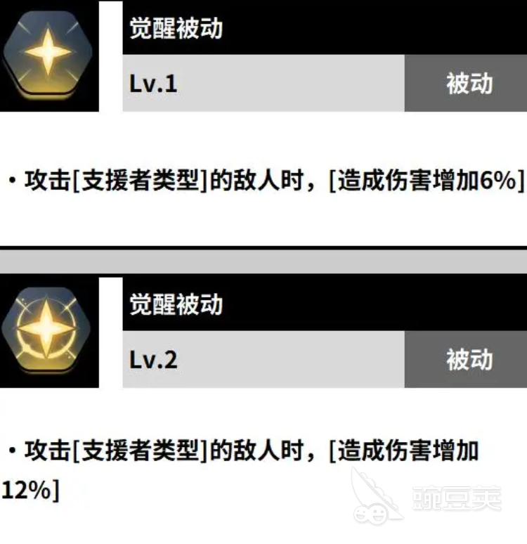 覺醒被動(dòng)技能主要是戈登去攻擊支援者類型的敵人時(shí)會(huì)被觸發(fā),觸發(fā)后能夠給敵人造成的傷害再增加6%,覺醒被動(dòng)技能在升級(jí)到2級(jí)后,在去對(duì)支援型的敵人進(jìn)行攻擊時(shí),所造成的傷害會(huì)增加12%。