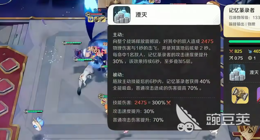 “記憶篡錄者”對整個戰(zhàn)場釋放的震撼波,能夠?qū)ζ渲械臄橙嗽斐?,基礎(chǔ)攻擊倍率為300%的輸出效果,同時,在釋放之后,“記憶篡錄者”還可以獲得40%的吸血能力,可以說召喚物越多,玩家的整體戰(zhàn)斗能力就會越強大。