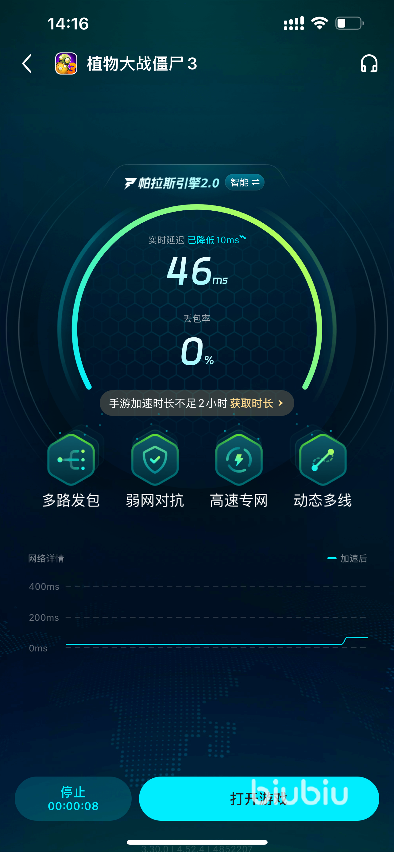 要是大家在合成新的植物時延遲高,就不能將植物正確擺放在好的位置上,從而讓僵尸攻破我們的家園。這里建議大家用上biubiu,又可有效減少延遲,從而自信從容地解決一波又一波的僵尸。如果在挑戰(zhàn)新的家園模式關(guān)卡時閃退,即便最終即將防御成功,也會失敗。所以一定要用加速器,這樣才能保證自己可以挑戰(zhàn)成功。如果出了新的玩法或者關(guān)卡的話,就必須下載后才能繼續(xù)挑戰(zhàn)。采用加速器后,就能更快更新這些關(guān)卡,可隨心暢玩。