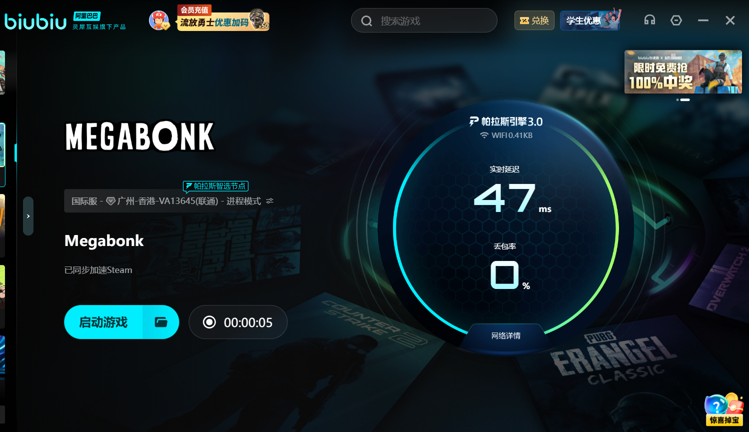 更令人心動的是,biubiu加速器還為為新老用戶準(zhǔn)備了豐厚大禮,注冊即享平臺自動贈送的24小時(shí)免費(fèi)會員體驗(yàn)權(quán),此外輸入【biubiu不掉線】立即再解鎖長達(dá)72小時(shí),這樣一疊加總計(jì)長達(dá)96小時(shí)暢玩加速,點(diǎn)擊開啟就能體驗(yàn)無卡頓樂趣。
