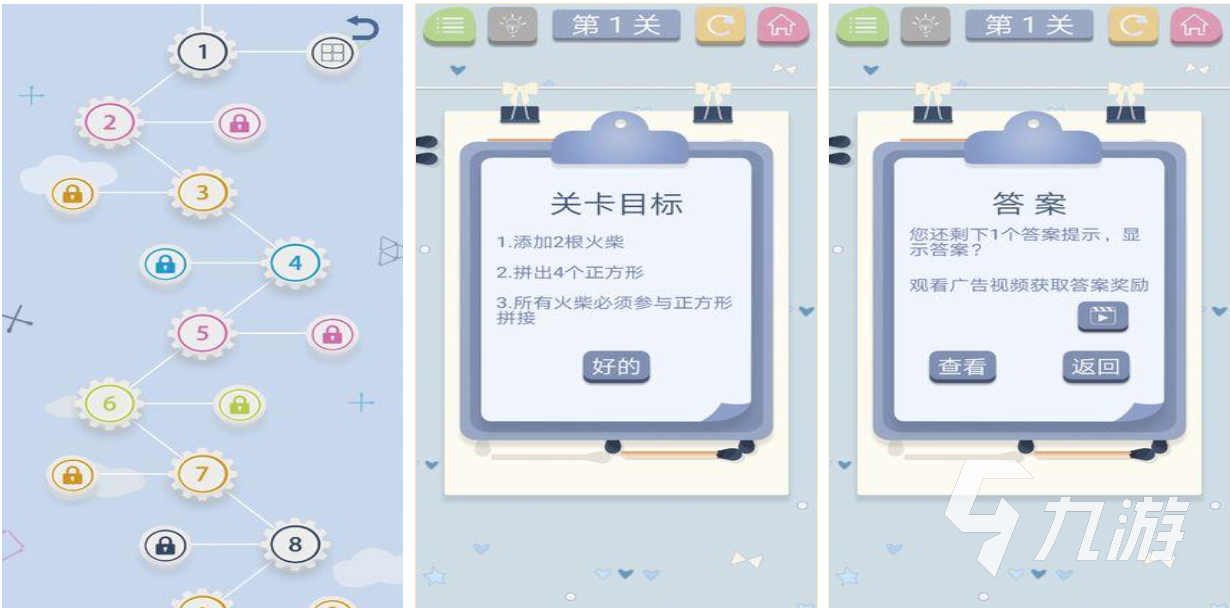這款融入了益智休閑和火柴棒元素的單機手游也可以開發(fā)玩家的大腦,你必須根據(jù)操作指引利用形形色色的火柴組成各種各樣的形狀,甚至可以在原有的基礎上添加火柴棍完成相對的任務,整體操作和游戲規(guī)則還是很有難度的會讓玩家的智商趕得到鍛煉,如果不小心排列錯誤還可以刷新按鈕重新再來。