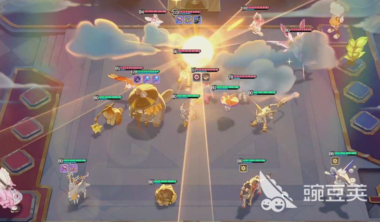 并且,玩家也可以攜帶,同樣附帶有飽足屬性的小精靈上陣,例如布丁狗、憨堡等等,這一些角色在促成了強(qiáng)大的飽足隊(duì)列后,不僅能打能防,還能夠?yàn)殛?duì)友提供一定的治療能力,于戰(zhàn)斗的前期,可以使用這三個(gè)精靈的陣容,來直接完成所有的主線劇情。