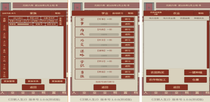 漢朝人生2手游一進(jìn)去就能選擇出身,選農(nóng)家子弟剛開始就得去種地,拿著鋤頭在田里勞作,種出來(lái)的糧食可以賣掉換錢,也可以自己吃,選商賈后代就能從擺攤開始,賣些小玩意兒,慢慢攢錢開店鋪,成年之后能選擇成家立業(yè),娶個(gè)妻子生幾個(gè)孩子,教孩子讀書或者習(xí)武,孩子長(zhǎng)大了能幫你做事。