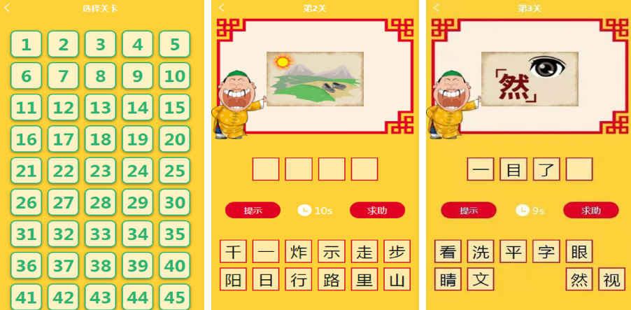 這款適合在年會進(jìn)行PK的知識類作品,以成語作為競猜基礎(chǔ),享受在知識海洋的歡樂。系統(tǒng)設(shè)計了明亮而又鮮艷的卡通成語界面,玩家們可通過文字或者簡略圖片的提示進(jìn)行成語競猜,由簡到繁的成語庫存讓你逐漸沉浸。本手游把故事和文化闖關(guān)相結(jié)合,玩家過關(guān)后會有數(shù)量不等的紅包作獎勵,在年會上一決雌雄也有熱鬧氣氛。
