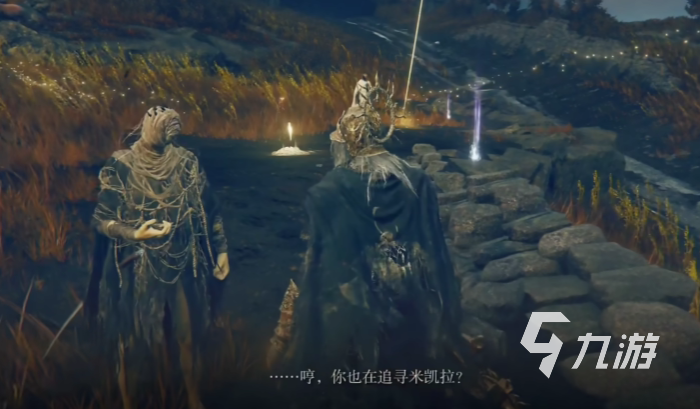 首先要來到墓地平原的十字路口,找到角人npc進(jìn)行交談,他會(huì)告訴我們角人是跟黃金樹勢力敵對(duì)的,現(xiàn)在也是愿意相信米凱拉,打破黃金律法。對(duì)話中選擇追隨米凱拉,然后他會(huì)給玩家三個(gè)米凱拉碎片的地圖。