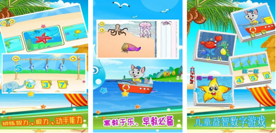 學(xué)齡前的兒童,做好啟蒙教育是非常重要的,游戲?qū)⒄鎸?shí)的海洋世界以及各種簡(jiǎn)單數(shù)字全部集結(jié),比如在浩瀚無(wú)邊的海洋中,可能會(huì)有各種稀缺的生物,有可愛(ài)的熱帶魚(yú),又有體型龐大的大鯊魚(yú)等等,通過(guò)數(shù)魚(yú)的方式就能更好的學(xué)習(xí)到數(shù)字內(nèi)容,就比如有的游戲需要讓大家連線或數(shù)一數(shù),屏幕上方會(huì)看到幾個(gè)海洋生物,而下方又會(huì)有幾個(gè)不同的數(shù)字,只要通過(guò)一一數(shù)數(shù)的方式尋找到正確的數(shù)字即可。