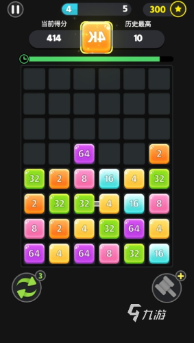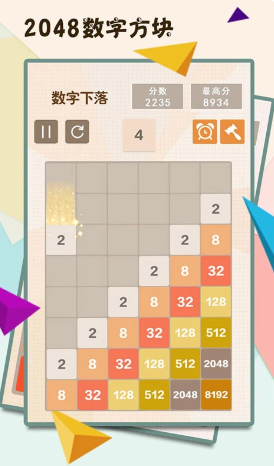 大家通過拖動的操作,把相同顏色和相同數(shù)字的方塊湊到一起并合成像。兩個r能合成4接著就去找相同顏色,數(shù)字是4的方塊接著合成。每個關(guān)卡上方都標著最后需要合成的目標,小目標可以是16,如果是想要挑戰(zhàn)高難度,也可以去嘗試一下2048,要是場上數(shù)字不好,連一塊不要慌,每一關(guān)都有重新分布的功能,最多能使用三次,還有小錘錘道具可以幫助大家去清除合成路上的障礙。