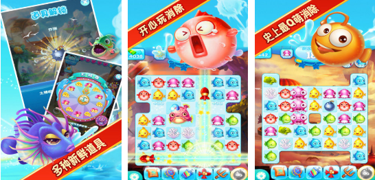 說到這一款游戲,很多人都很喜歡,會(huì)把三消玩法以及boss戰(zhàn)全部結(jié)合在一起。游戲中的關(guān)卡很多,每一個(gè)關(guān)卡的場(chǎng)景都會(huì)有所區(qū)別,當(dāng)你在順利的過關(guān)之后就可以獲得成就,拿到對(duì)應(yīng)的獎(jiǎng)勵(lì)。和那些普通的消消樂比較,很明顯這種混搭的玩法更加的有趣,就算玩很長(zhǎng)的時(shí)間也不會(huì)過于的膩味。從畫面來看,這些小魚真的是特別的萌,讓人喜愛不已。