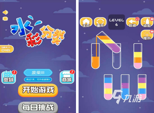 一個主打顏色分類的益智休閑游戲,主要核心的玩法是將不同顏色的水直接放入到玻璃杯中。最終讓每一個杯子里面的水分顏色全部都要完全一致。看似操作比較簡單,實際上就會比較考驗玩家的策略規(guī)劃能力。游戲中有數(shù)千個謎題關(guān)卡梯度的設(shè)計看上去還是比較合理的,所以就可以讓玩家擁有持續(xù)性的歡樂。