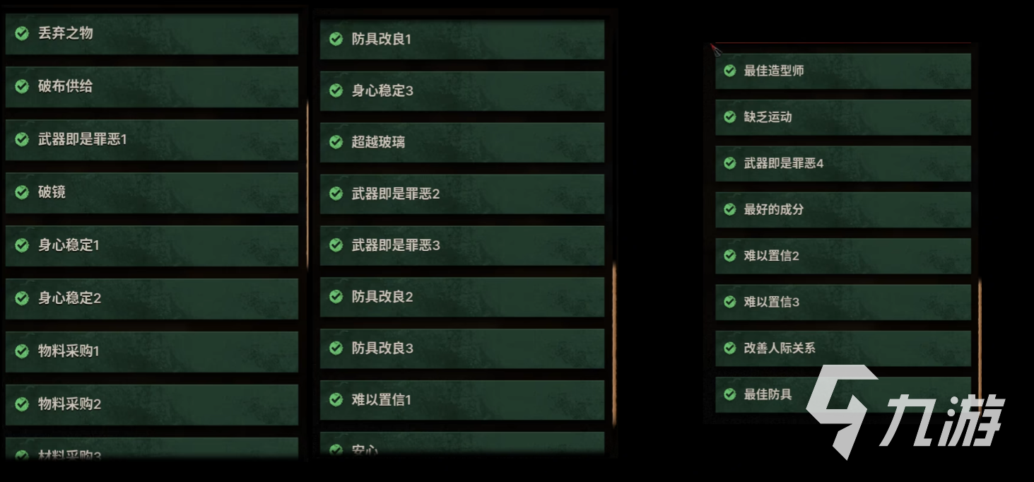 丟棄之物任務(wù)需要各位找到14樓的防具商人的房間,在這里能找到玩家需要的道具;破布供給需要在圖中找到并且上交四個(gè)破布道具,道具在樓層的2號(hào)位置,在衣服店內(nèi)任意位置都能發(fā)現(xiàn);武器即使罪惡,需要在途中找到大錘(高級(jí))、匕首(高級(jí))、廢鐵長矛(高級(jí)),在任意的樓層的武器箱子內(nèi);破鏡,需要在途中找到并且尋找一個(gè)后視鏡,在B1樓層,在車子附近屬于高頻率刷新地點(diǎn);貼身穩(wěn)定,需要尋找香草茶兩個(gè),道具刷新在樓層1,位于食品貨架位置上;身心穩(wěn)定,需要擊殺試煉模式的普通喪尸。
