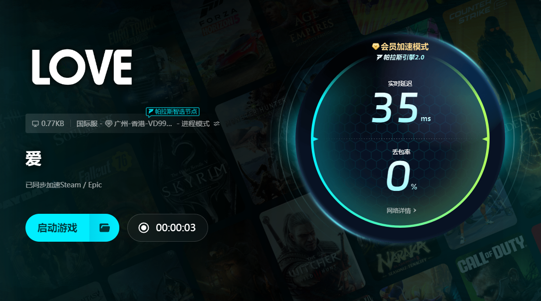 后續(xù)的加速效果大家也都能看得到,操作時候簡單幾步,大家就可以完成全部的加速,非常的簡單,后續(xù)不玩游戲了,也只需要一鍵關閉即可,最主要的是不僅可以給游戲加速,很多用steam去下游戲的小伙伴也可以用該平臺給steam商店進行限免加速,也是能提升游戲下載速度的,所以不僅是玩兒游戲,下游戲也有很好的加速服務。