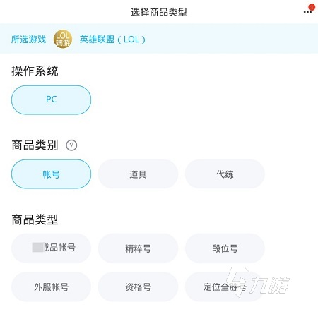 在交易貓這款平臺下方點(diǎn)擊我想賣之后選擇LOL這款游戲我們就可以看到平臺支持的交易范圍了。目前平臺支持賬號、道具等的交易,而在賬號方面,除了自用的普通賬號之外,通過賬號中比較出色的內(nèi)容又分為精粹號、段位號、外服賬號、資格號以及定位全勝號。這些賬號都有其不同的特色,買家可以根據(jù)自己的需求進(jìn)行選擇,對我們賣號來說也是提高效率的途徑。