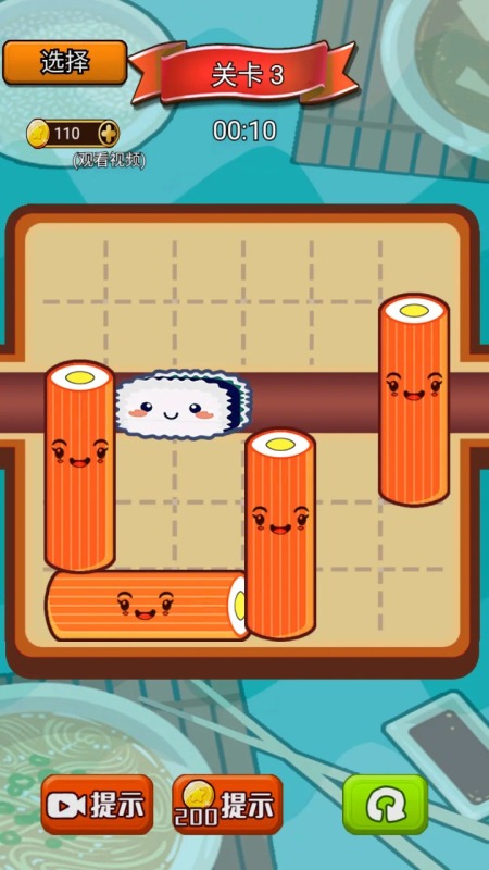 《壽司大作戰(zhàn)》一款更為標新立異由美食改編的闖關小游戲,在這里玩家將扮演可愛溢滿的糯米壽司,從平滑的通道中去躲避長條狀的竹筒壽司,最終成功的讓顧客能夠吃到心心念念的食物,游戲的玩法難點在于,竹筒壽司在游戲的方格中會進行不規(guī)則的挪動,玩家需要抓住其行動產(chǎn)生的空擋,一格一格的向前挪動,隨著壽司數(shù)量的增加,過程會更加的紛紜復雜。