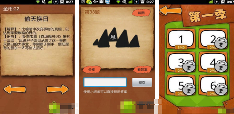 要想擴充成語知識儲備,那就可以選擇成語達人,里面會設(shè)置出一個比較簡單的豎屏場景,同時還會有著大量的章節(jié),每一個章節(jié)里還會有大量的關(guān)卡,這會有很多文字形容形式,也會有很多簡單的圖畫,玩家需要根據(jù)每一個題目表達的意思,輸入正確成語,提交之后只有回答正確才能順利通關(guān),通過游戲能掌握大量的成語知識。