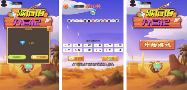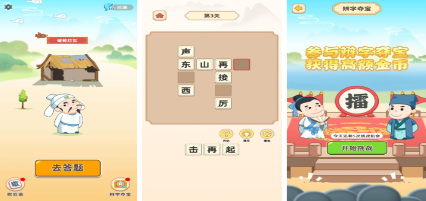 答題游戲排行榜介紹完了,每個游戲里都會有大量的答題挑戰(zhàn),通過答題能記憶大量的詩詞,成語,也能了解很多歇后語,游戲的設(shè)定都會各有特色,有感興趣的可以直接下載體驗。